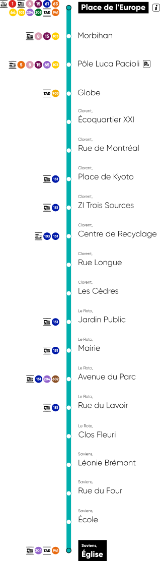 La ligne 105 est une ligne suburbaine qui relie la ville-centre aux communes de Clorent, du Roto et de Saviens. Elle dessert le pôle universitaire Luca Pacioli, la ZAC Globe, l’Écoquartier de Clorent, la ZI de Clorent, le centre-ville et la mairie du Roto ainsi que le bourg de Saviens.