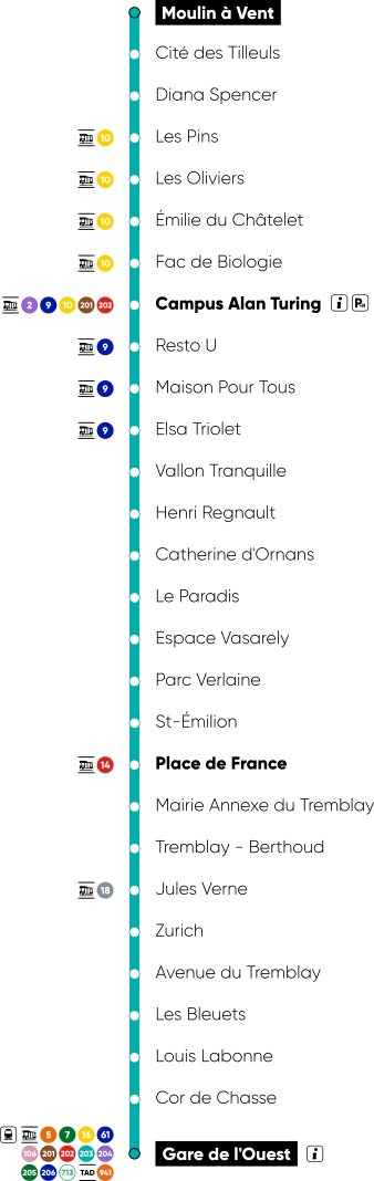 La ligne 17 est une ligne ajoutée lors du nouveau réseau de 2025. Elle dessert le nord de la ville-centre avec le quartier du Moulin à Vent et le Campus Alan Turing, elle bifurque vers le sud et dessert ensuite le Parc Verlaine, le quartier du Tremblay et le pôle d’échanges de la Gare de l’Ouest.