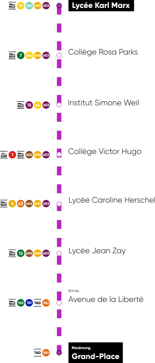 La ligne 651 est une ligne interurbaine à vocation scolaire qui relie les communes de Naubourg et de Brinte à plusieurs établissements scolaires de la ville-centre. Elle dessert le lycée technologique Jean Zay, le lycée général Caroline Herschel et le collège Victor Hugo, l’institut Simone Weil, le collège Rosa Parks et le lycée Karl Marx.