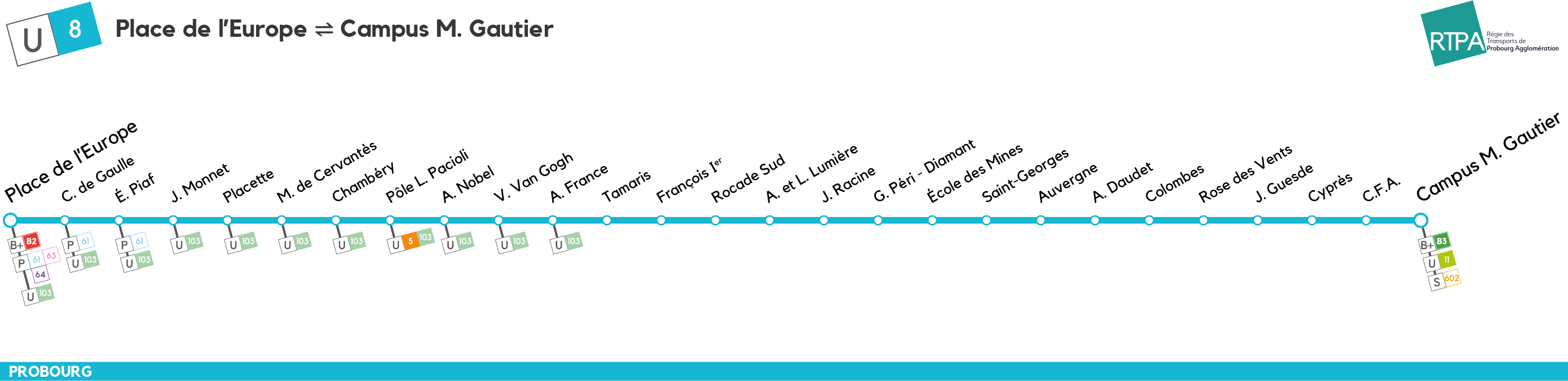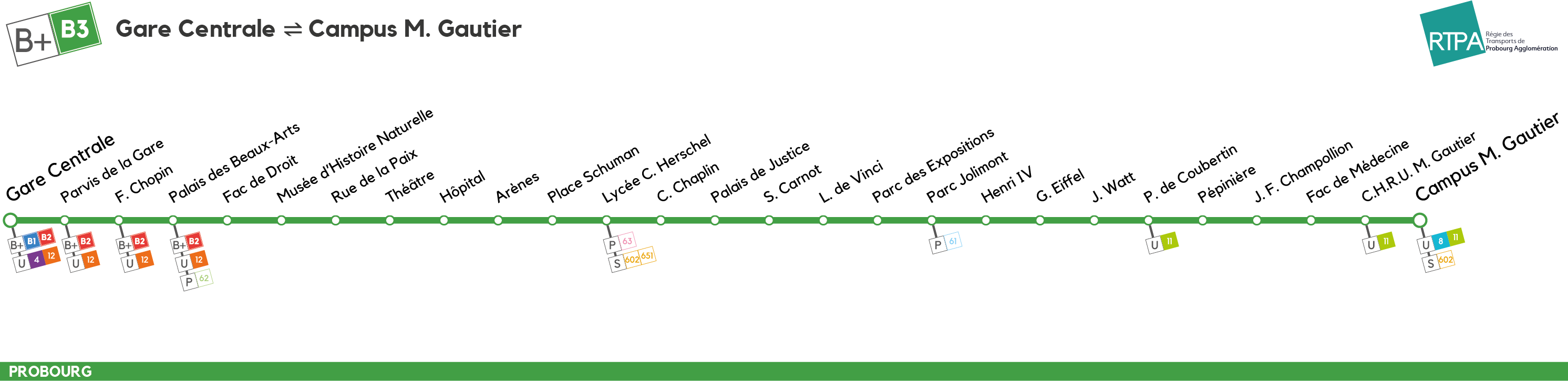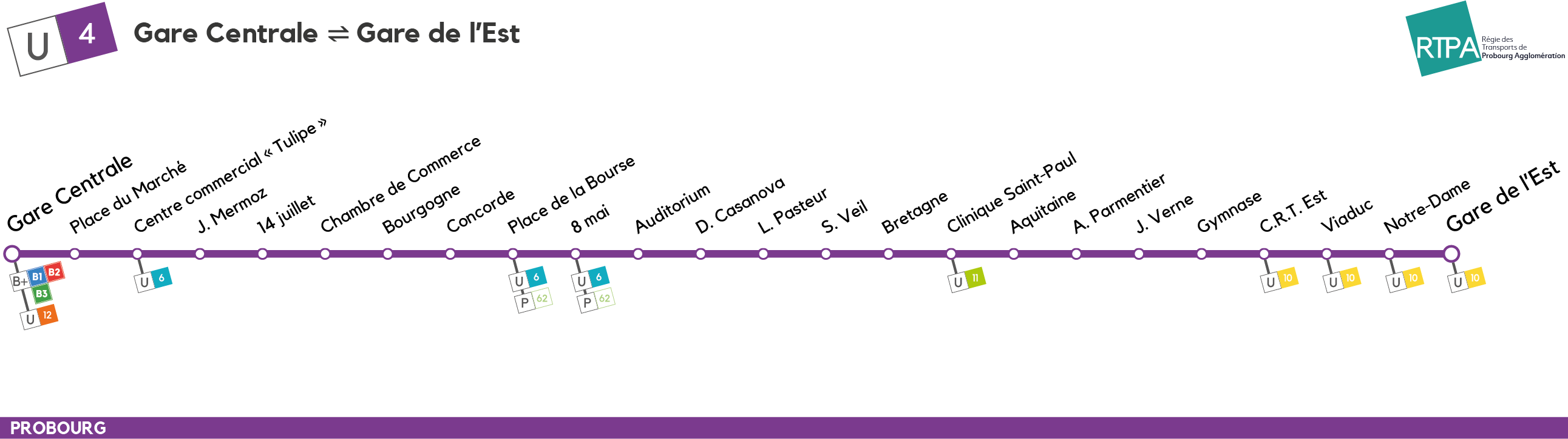 Notre réseau, composé de 25 lignes régulières, 4 scolaires et 2 à la demande, dessert une grande part du territoire de la ville de Probourg et de son Agglomération. En choisissant la RTPA, vous pouvez vous déplacer où vous le souhaitez tout en polluant moins !