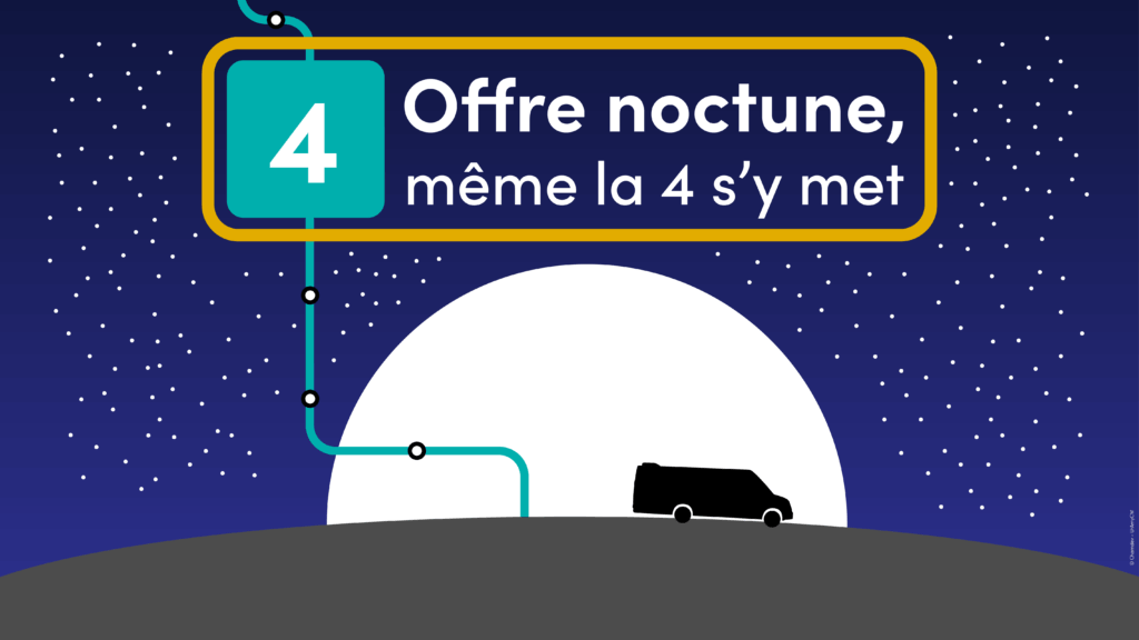 ![]() | Amplitude horaire : la ligne 4 circule désormais du lundi au dimanche ! Un service de réservation sur les heures nocturnes (23h-5h). Fréquence : la ligne se voit renforcée du lundi au samedi, quelle que soit l’heure. Une nouvelle offre de fréquence le dimanche. | Lundi au samedi : 6h à 22h Dimanche, 7h-9h puis 16h-18h. Un bus toutes les 9 minutes en pointe semaine. |